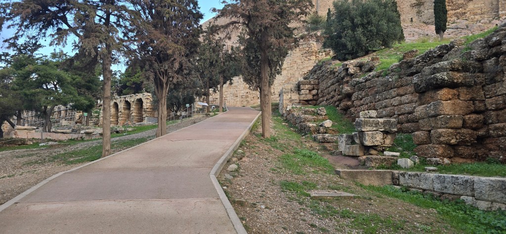 I didn’t go inside the fenced area, but I walked along three sides of it — enough to feel its scale. The Temple of Hephaestus stands almost impossibly preserved above it, steady and symmetrical.