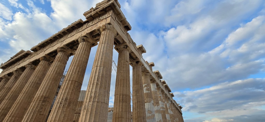 We passed Athens’ first skyscraper under construction — cranes rising into the skyline. Ancient columns and modern steel, still coexisting.