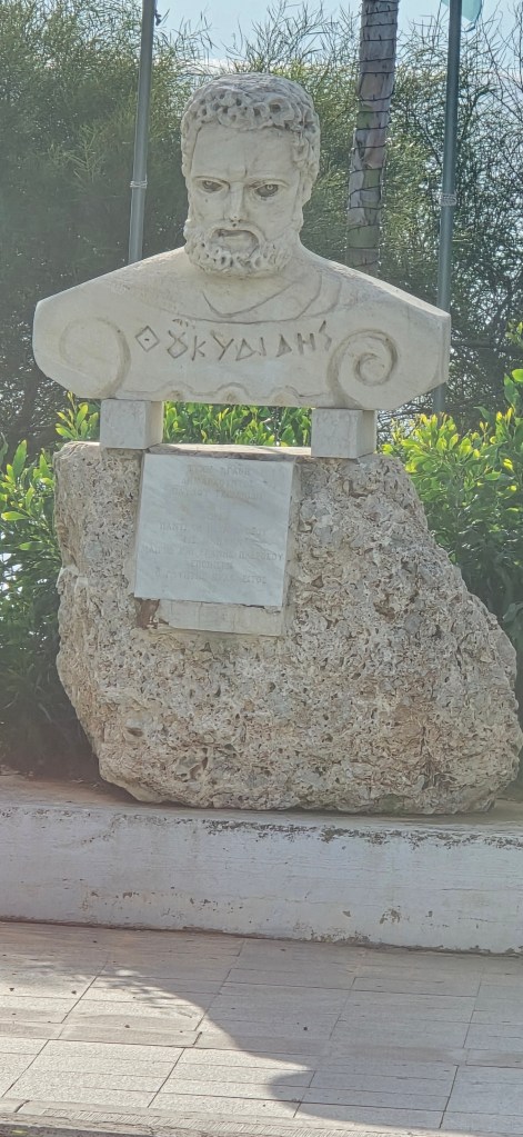 On the drive, I spotted a carving of Odysseus — and it made me grin. Apparently, when you spend the day with Homer, he sends a reminder you’re still in his story.