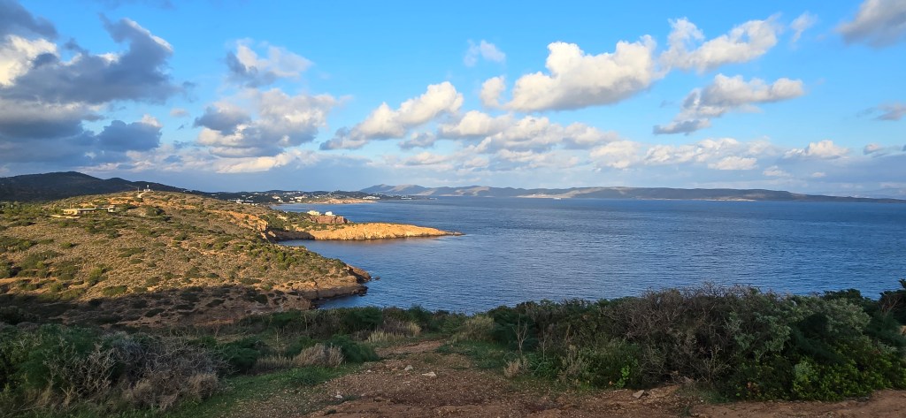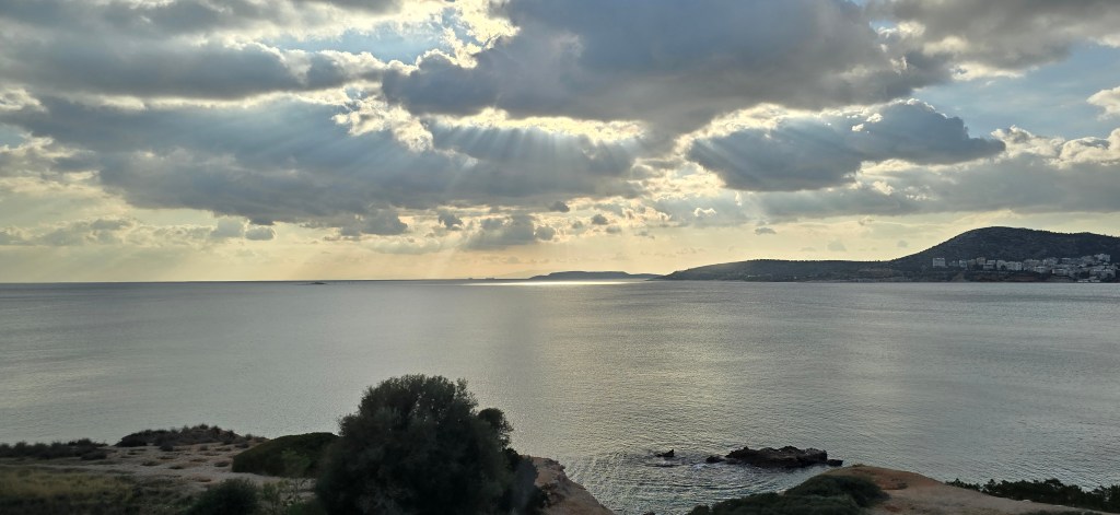 I couldn’t help but think of the legends that hover over this coastline — of sailors watching the horizon for safe return, of Odysseus passing these waters longing for home, of King Aegeus misreading the sails against a sky that may have looked just like this.