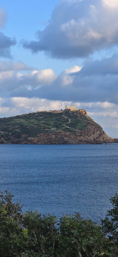 As we pulled over at a scenic viewpoint to glimpse the Temple of Poseidon in the distance…