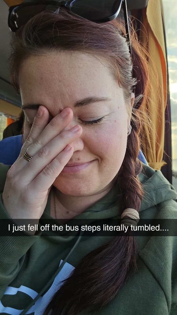 I literally tumbled down the bus steps. Right in front of the entire group.