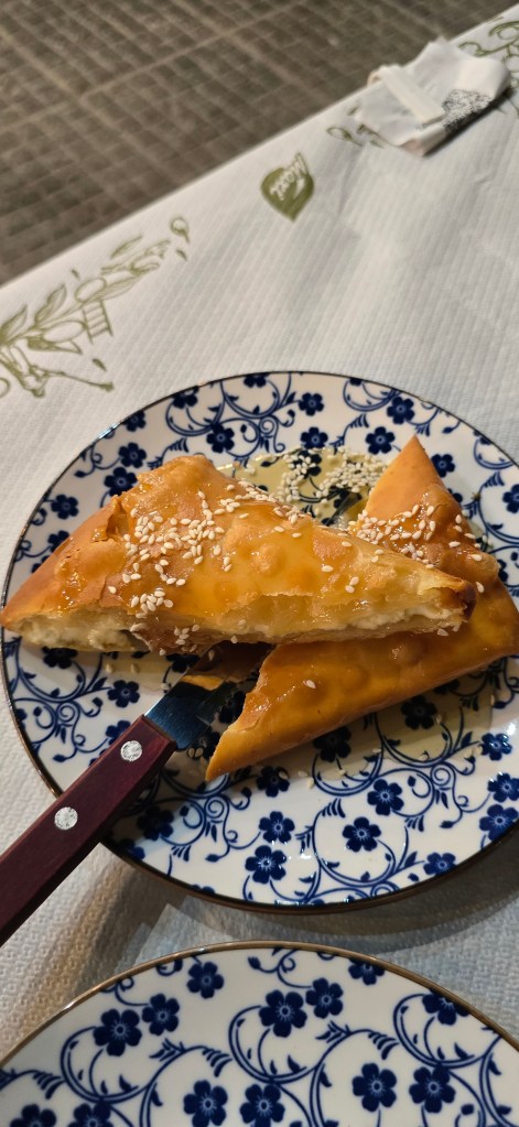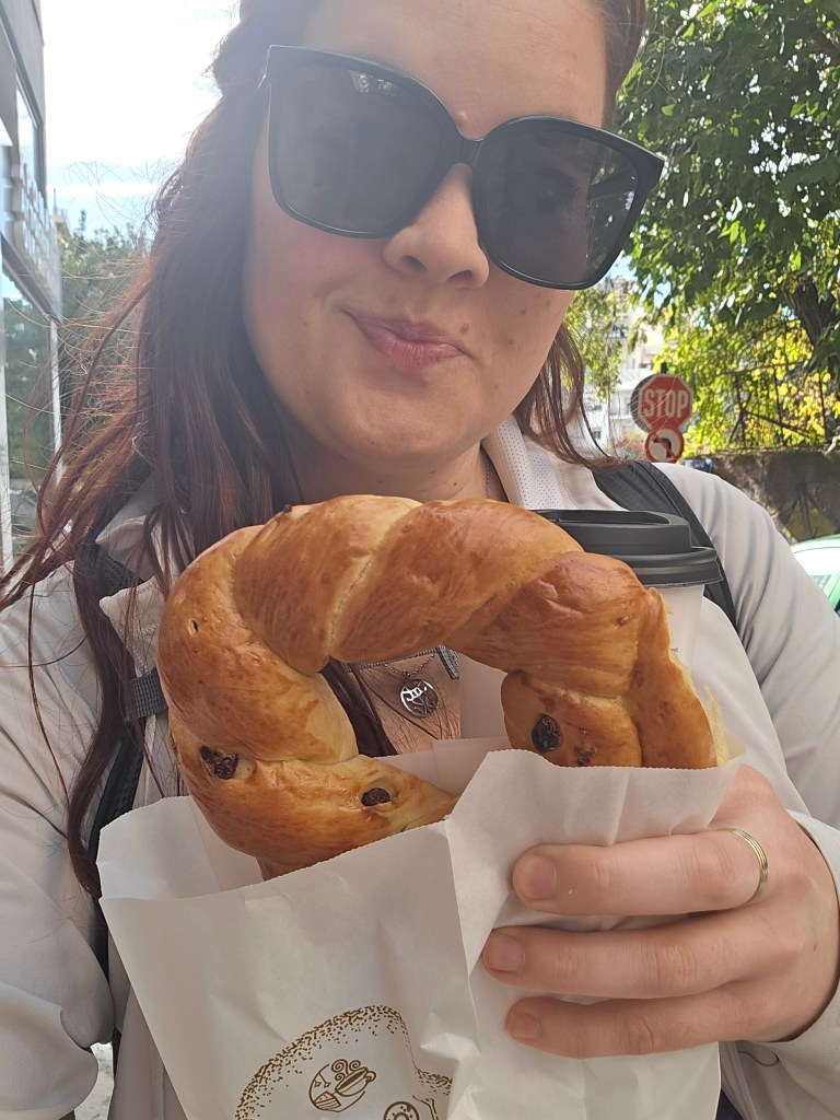 I started the day the right way: with a delicious breakfast of stafidopsoma — soft, hearty raisin bread rolls, similar to bagels — and a cup of Greek coffee. ☕