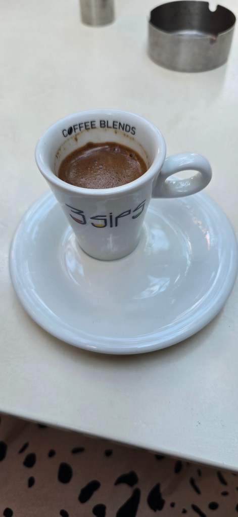 This was my first taste of Greek coffee — and it surprised me. It was hot, but incredibly smooth, with a richness I couldn’t quite place at first. Greek coffee is brewed slowly in a small pot called a briki, where finely ground coffee is simmered rather than filtered. The grounds settle at the bottom, which means you sip carefully and never drink it all.