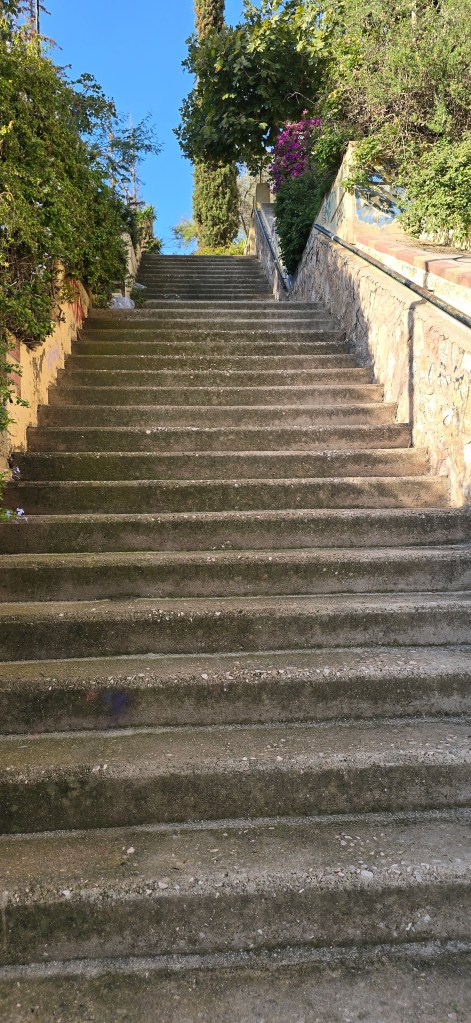 A steep climb that immediately made me laugh. I leaned into it and started my way up, only to be met by a set of stairs I couldn’t see the end of. Up I went… to find more stairs. I conquered those too and finally continued into the surrounding park area.