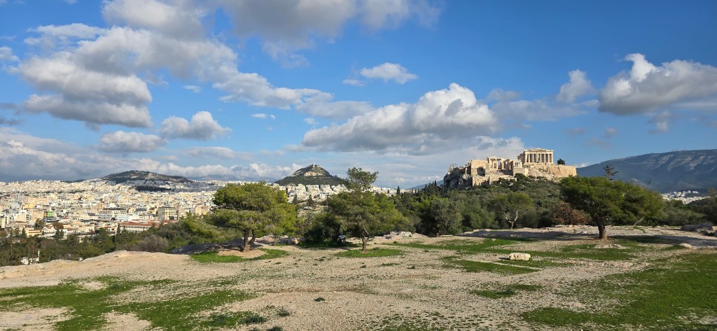 From there, I could also see the Acropolis in the distance. I imagined standing on that hill centuries ago — during the time of St. Paul, or even earlier — catching sight of the temples in their full splendor. The photos don’t do justice to the awe-inspiring grandeur of the view.