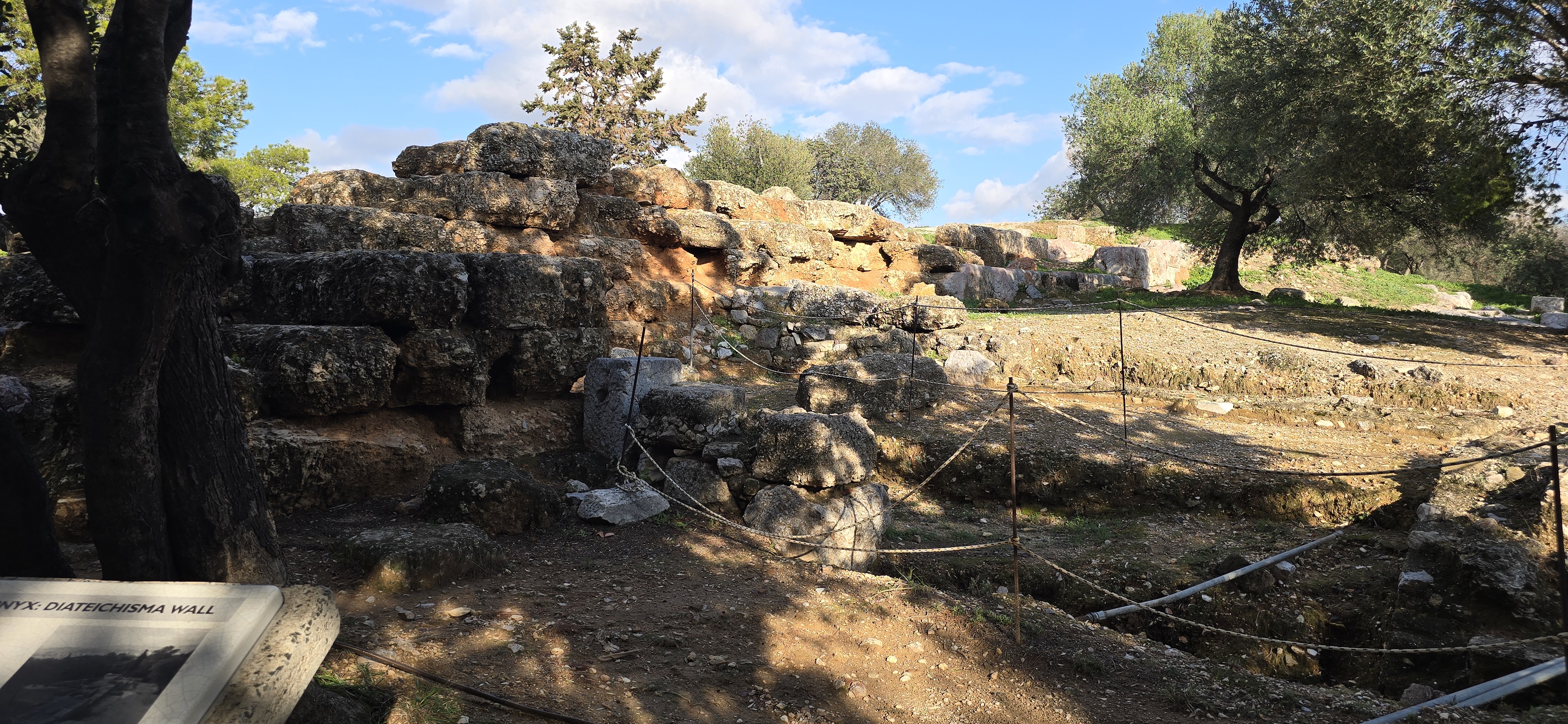 I continued wandering through wide open spaces toward the Hill of the Pnyx and the Diateichisma Wall, one of Athens’ most significant fortification monuments. Stretching nearly 900 meters, the wall dates back to the 4th century BC and was reinforced over time in response to threats — Macedonian, later Roman, and beyond. It’s a physical reminder that cities, like people, strengthen themselves layer by layer.