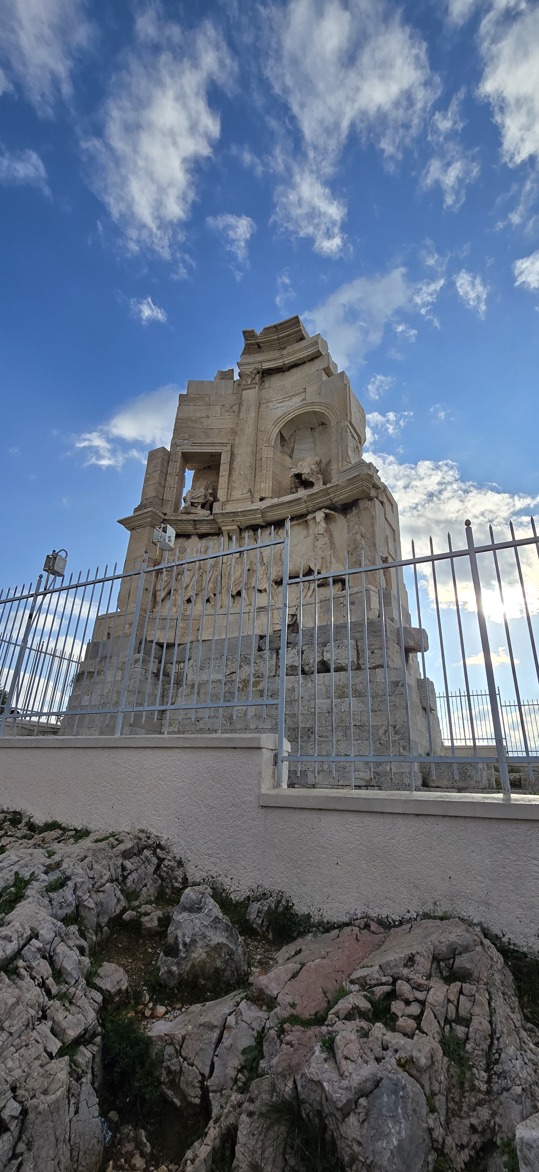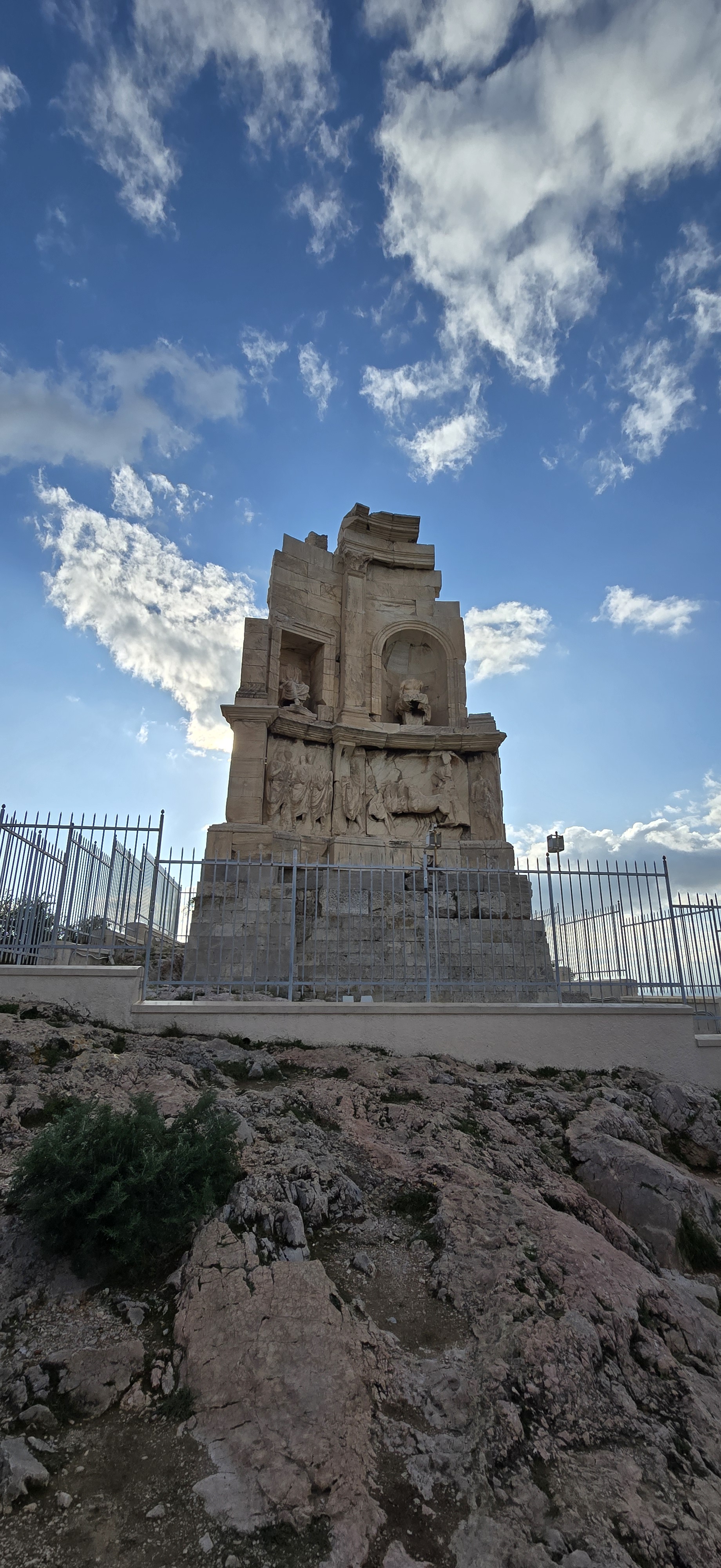 I had reached the Hill of the Muses, the highest of the hills west of the Acropolis. Named for the poet Mousaios, the area once served as a shrine, later a strategic stronghold, and eventually the site of the Philopappos Monument, built in the 2nd century AD.