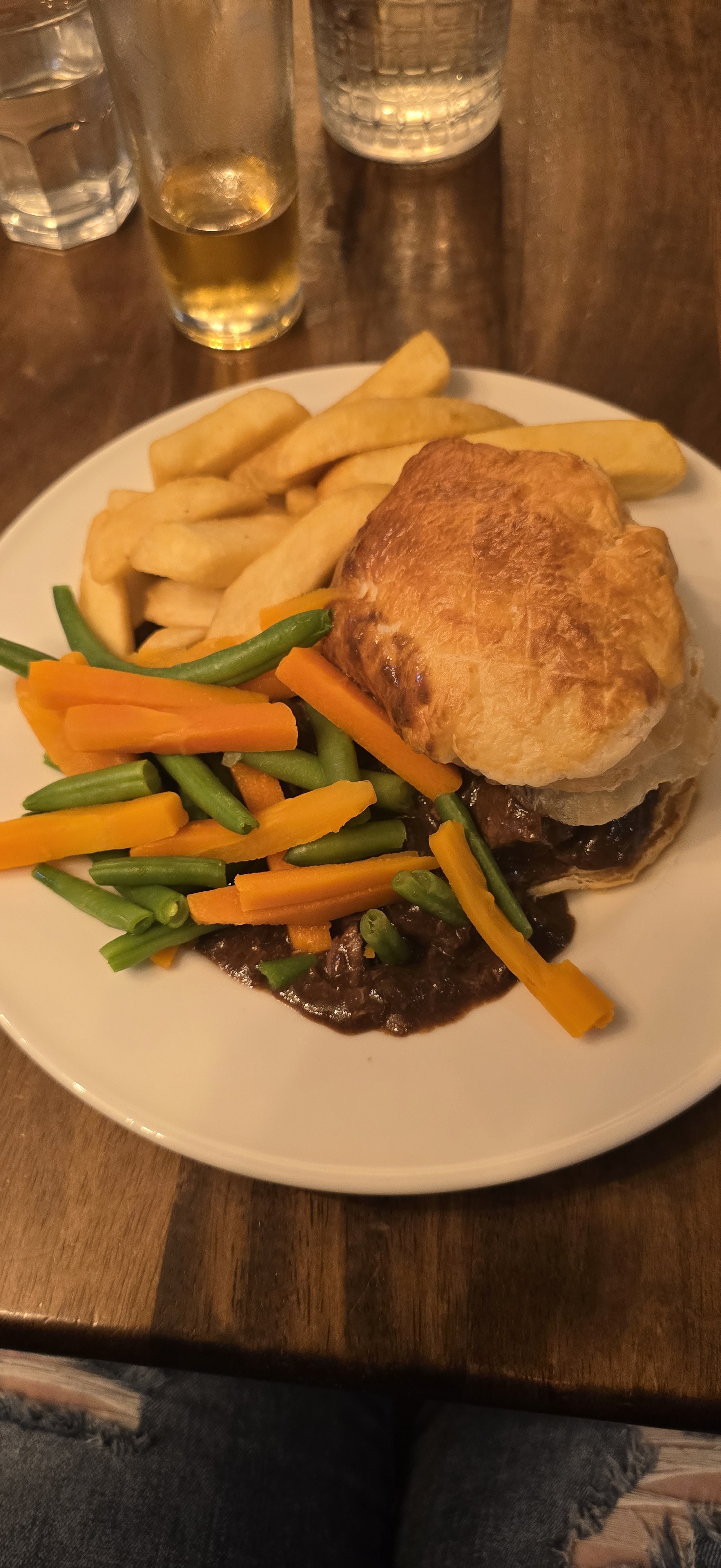 Just a few steps away, I found a cozy spot that promised hearty Scottish fare 🐟 and a quiet place to regroup. I dropped my bags 🧳, ordered a drink 🍺, and decided to dive right in—when in Scotland, try the haggis, right?